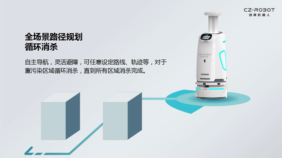 消毒機器人在疫情現場(chǎng),重點(diǎn)針對患者、醫護、醫廢的G頻活動(dòng)區域進(jìn)行沿路經(jīng)自動(dòng)G水平消毒,重點(diǎn)針對患者和醫護人員的所處區域進(jìn)行多點(diǎn)終末消毒。