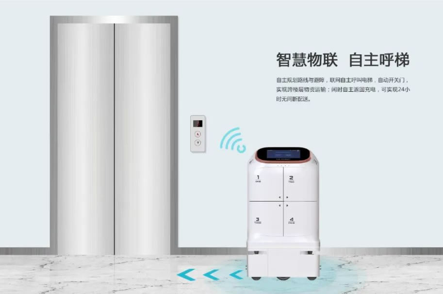配送服務(wù)是機器人核心的功能,創(chuàng )澤智能配送機器人針對配送全流程進(jìn)行體驗優(yōu)化,真正實(shí)現了全程無(wú)接觸配送。配備艙體有超大的儲物空間,聯(lián)網(wǎng)自主呼叫電梯,實(shí)現跨樓層物資運輸;在G峰時(shí)段支持多機協(xié)作,放取貨品后自動(dòng)關(guān)閉艙門(mén),到達指定房間后,通過(guò)住房間內的門(mén)鈴、電話(huà)、小程序等方式通知客人取貨,在配送途中遇到客人,會(huì )貼心的送去問(wèn)候。