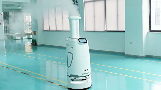 消毒機器人使用霧化噴霧、紫外線(xiàn)燈雙重途徑消毒滅菌,是保證隔離點(diǎn)各個(gè)死角、空氣安全性的強力護衛。微米J霧化裝置搭配環(huán)繞式紫外燈,可以實(shí)現360度無(wú)死角自主消殺。
