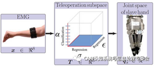 2019年,哥倫比亞團隊提出了一種由EMG驅動(dòng)的非擬人化機器人手遙操作方法,這種方法將人前臂的EMG信號連續映射與遠程操作相關(guān)的三個(gè)子空間中,然后再從這個(gè)子空間映射到機器人手的關(guān)節空間[4]。這個(gè)方法有效且直觀(guān),使新手操作者更快熟悉操作方案,可以魯棒地完成遠程操作拾取和放置任務(wù)。