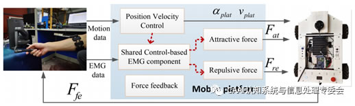 除了使用遙操作技術(shù)對機械臂或者機器手的控制,2020年西英格蘭大學(xué)的楊辰光團隊提出了一種用于全向移動(dòng)機器人的EMG與觸覺(jué)設備混合控制方法[8]。這種混合共享控制方法基于肌電圖和人工勢場(chǎng),用以根據排斥力和吸引力避開(kāi)障礙物,并基于移動(dòng)平臺的力反饋增強人類(lèi)對遠程環(huán)境的感知。這種共享控制方法使遙操作者遠程控制移動(dòng)機器人的運動(dòng)并同步實(shí)現避障。與傳統的共享控制方法相比,該提議的方法提供了基于肌肉激活的力反饋,并驅動(dòng)操作者以可預測的方式更新其控制意圖。終通過(guò)各種避障實(shí)驗表明這種遙控方法對移動(dòng)機器人控制的有效性。