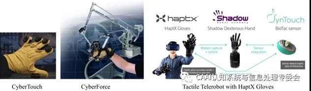 觸覺(jué)反饋對于接觸豐富的外部操作任務(wù)至關(guān)重要,觸覺(jué)設備已在外科手術(shù)機器人中得到廣泛研究,并用于在虛擬現實(shí)應用程序中收集訓練數據,如HaptX development kit。一些商業(yè)產(chǎn)品CyberGlove、HaptX以物理阻力和空間接觸的形式提供了觸覺(jué)反饋,但是這種好處伴隨著(zhù)成本的增加。HaptX與Converge Robotics Group(由國際公司組成的財團)共同開(kāi)發(fā)了TactileTelerobot遠程機器人,以推動(dòng)觸覺(jué)和機器人技術(shù)的發(fā)展 [6]。TactileTelerobot是世界上D一個(gè)能夠將逼真的觸摸反饋傳輸給位于世界各地的操作員的機器人系統,該系統集成了三個(gè)主要產(chǎn)品,每個(gè)主要產(chǎn)品都在其類(lèi)別中處于L先地位:Shadow Robot Hands,SynTouch BioTac傳感器和HaptX Gloves。Tactile Telerobot通過(guò)真實(shí)無(wú)延遲的觸覺(jué)反饋實(shí)現了多種機械手靈巧操作,如倒水、擰瓶蓋、轉魔方、寫(xiě)字、開(kāi)紙盒、幫人帶耳機,甚至人體按摩等。
