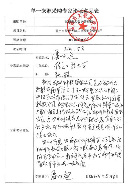 經(jīng)專(zhuān)家論證,認為本次采購屬于只能從供應商處采購 情形,我單位擬采用單一來(lái)源采購方式選用數字鄭州科技有限公司作為供應商。