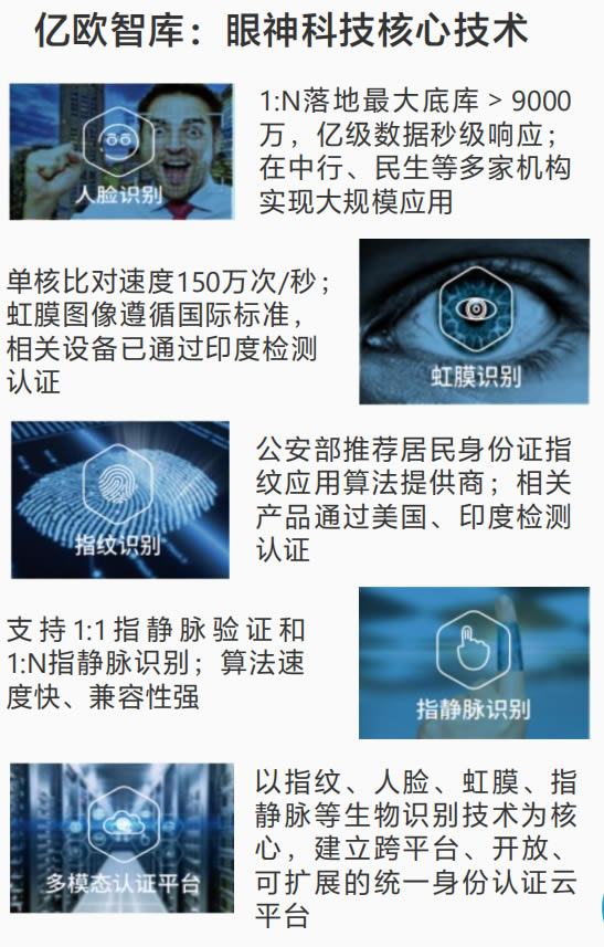 眼神科技是一家AI驅動(dòng)的多模態(tài)生物識別技術(shù)解決方案提供商,擁有指紋識別、虹膜識別、人臉識別、指靜脈識別等多種自主知識產(chǎn)權生物識別技術(shù),并成功打造了多模態(tài)生物識別統一平臺,實(shí)現多場(chǎng)景、多應用、多產(chǎn)品、多種識別技術(shù)統一管理。眼神科技基于多模態(tài)生物識別核心算法和統一平臺,賦能合作伙伴,實(shí)現場(chǎng)景落地,已經(jīng)服務(wù)于 2000+客戶(hù),涵蓋了金融、教育、社保、公安、政府、軍隊以及企事業(yè)單位等多個(gè)L域, 與全國80%以上銀行機構和超過(guò)100所G校達成合作。