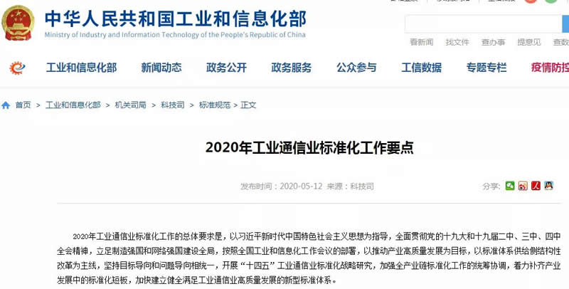 2020年5月12日,工信部發(fā)布《2020年工業(yè)通信業(yè)標準化工作要點(diǎn)》,提出聚焦5G網(wǎng)絡(luò )與應用、人工智能、工業(yè)互聯(lián)網(wǎng)、物聯(lián)網(wǎng)、數據中心、車(chē)聯(lián)網(wǎng)、智能制造、無(wú)人機、超G清視頻、虛擬現實(shí)等重點(diǎn)L域,以專(zhuān)項方式成體系推進(jìn)重點(diǎn)L域行業(yè)標準制定工作,促進(jìn)產(chǎn)業(yè)基礎能力和產(chǎn)業(yè)鏈現代化水平提升。