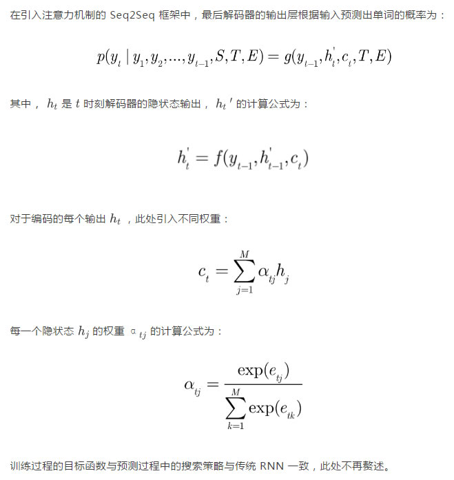 雖然基于 Seq2Seq 的對話(huà)生成模型取得了不錯的效果,但是在實(shí)際應用中模型很容易生成安全但是無(wú)意義的回復。原因在于該模型中的解碼器僅僅接收到編碼器后的一個(gè)狀態(tài)輸出 C,這種機制對處理長(cháng)期依賴(lài)效果不佳,因為解碼器的狀態(tài)記憶隨著(zhù)新詞的不斷生成會(huì )逐漸減弱甚至丟失源序列的信息。緩解這個(gè)問(wèn)題的一個(gè)有效方式是引入注意力機制[2]。