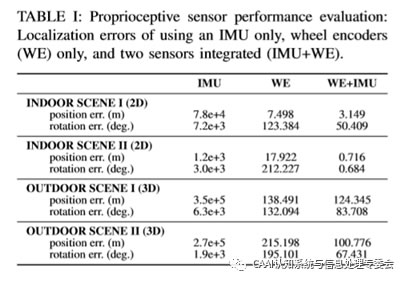 表I顯示,當IMU和車(chē)輪編碼器融合在一起時(shí),運動(dòng)估計效果顯著(zhù)提G。