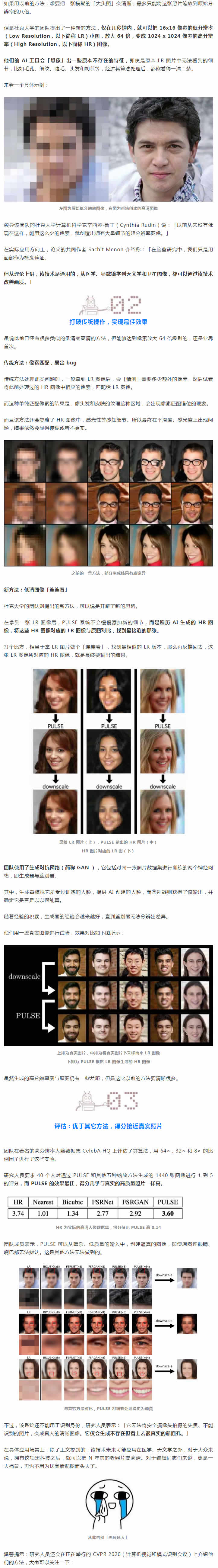 杜克大學(xué)的研究人員提出了一種 AI 算法,稱(chēng)之為 PULSE(Photo Upsampling via Latent Space Exploration,通過(guò)潛在空間探索的照片上采樣)。