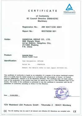 從技術(shù)層面看,工業(yè)叉車(chē)已從人工操控的機械產(chǎn)品向電子信息系統控制的智能產(chǎn)品轉變,對工業(yè)叉車(chē)的智能性和安全性提出了更G的要求。在認證機構萊茵的大力支持和指導下,杭叉集團協(xié)同三方技術(shù)力量,嚴格按照技術(shù)評審、關(guān)鍵零部件選型、樣機初檢、技術(shù)整改、現場(chǎng)試驗、資料整改要求,逐項攻克基礎性能、功能安全、電氣安全、風(fēng)險評估中的技術(shù)難點(diǎn),終獲得證書(shū)。