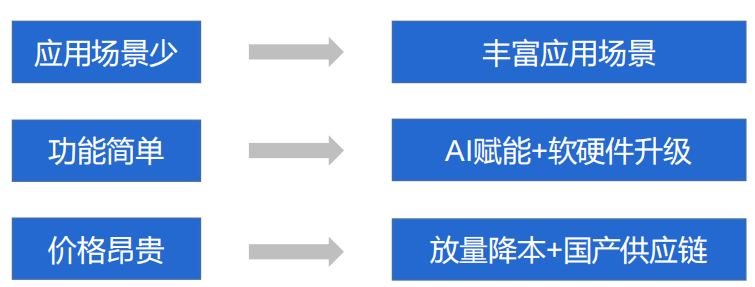 • 核心仍是機器人功能和智能化水平提升,支撐機器人從封閉場(chǎng)景走向開(kāi)放場(chǎng)景,從單一場(chǎng)景進(jìn)入復雜場(chǎng)景。