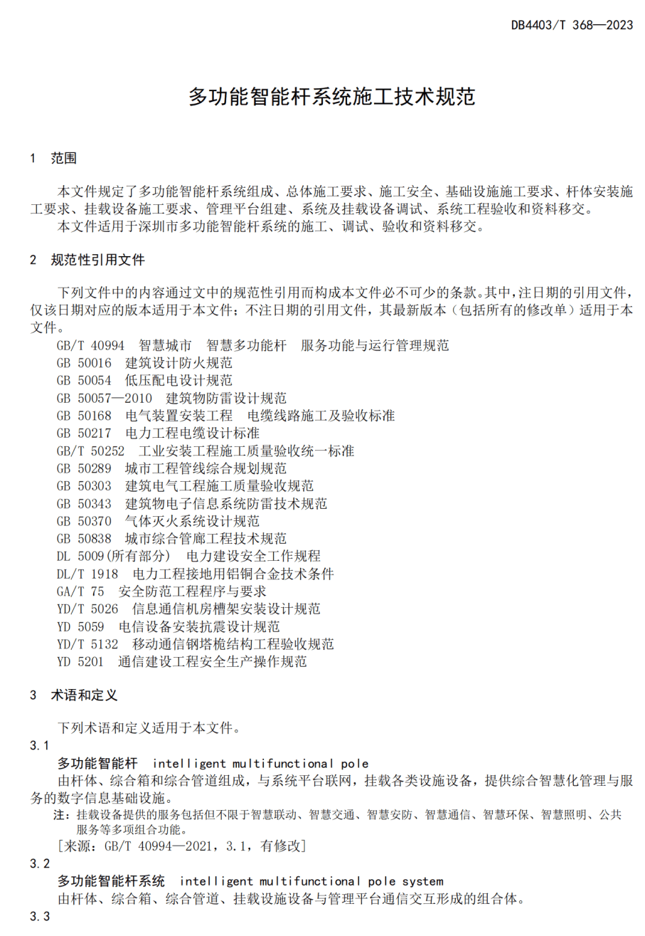 附件:深圳市地方標準《多功能智能桿系統施工技術(shù)規范》