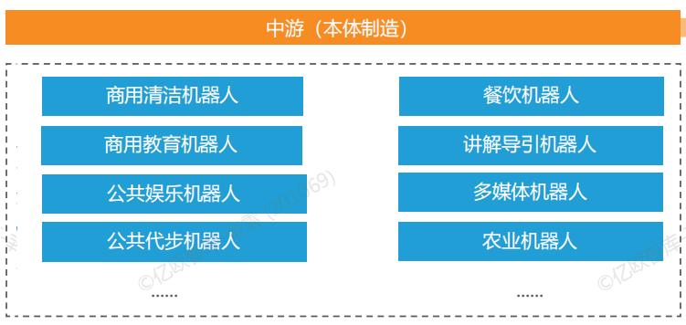 公共服務(wù)機器人產(chǎn)業(yè)鏈可分為,上游核心零部件、軟件系統開(kāi)發(fā)、中游機器人本體制造、下游機器人分銷(xiāo)商與各場(chǎng)景商業(yè)用戶(hù)。