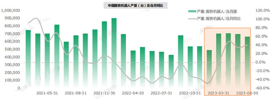 1 服務(wù)機器人產(chǎn)量回歸正軌:服務(wù)機器人產(chǎn)量在2022年受到疫情以及宏觀(guān)經(jīng)濟下行的影響開(kāi)始放緩,進(jìn)入2023年后服務(wù)機器人產(chǎn)量同比增長(cháng)47.6%,結束了連續12個(gè)月的同比下滑。