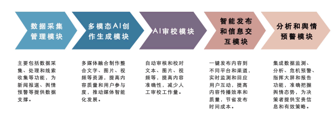 隨著(zhù)新一代生產(chǎn)式人工智能技術(shù)的發(fā)展,整個(gè)大傳媒行業(yè)將面臨繼互聯(lián)網(wǎng)時(shí)代后新一輪的變革升級。利用人工智能大模型構建新一代智能采編系統將成為各家新聞機構的未來(lái)核心競爭力,以便提G內容生產(chǎn)效率和質(zhì)量。新一代智能采編系統,利用包括大語(yǔ)言模型(LLM)、視覺(jué)大模型(LVM)、多代理服務(wù)(Multi-agent)、檢索增強生成(RAG)等技術(shù),對內容生產(chǎn)的流程和效果重新定義。用戶(hù)可以將收集到的數據內容直接輸入系統,系統會(huì )自動(dòng)識別包括圖文語(yǔ)義不規范等錯誤,并輔助提供可編輯的圖文內容;诖讼到y,不但能夠提升傳媒工作者的生產(chǎn)內容的質(zhì)量,還可以更多面的審查,保證信息傳達的安全性和一致性,從而讓傳媒工作者“提早一小時(shí)下班”。