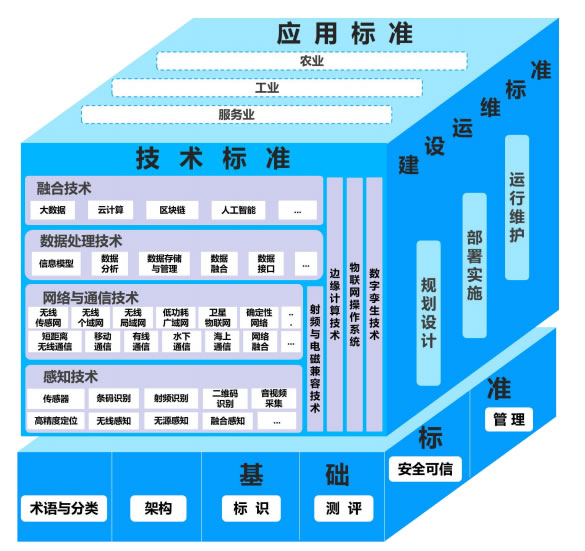 物聯(lián)網(wǎng)標準體系包括基礎標準、技術(shù)標準、建設運維標準和應用標準等4個(gè)部分,見(jiàn)圖1;A標準是物聯(lián)網(wǎng)的總體性、框架性標準,為其他各類(lèi)標準提供基礎支撐;技術(shù)標準是物聯(lián)網(wǎng)的關(guān)鍵共性技術(shù)與融合技術(shù)標準,為實(shí)現物聯(lián)網(wǎng)應用提供技術(shù)支撐;建設運維標準是物聯(lián)網(wǎng)系統規劃、建設、運行、維護的標準,以指導各行業(yè)推進(jìn)物聯(lián)網(wǎng)系統建設和規;渴饝;應用標準是面向行業(yè)具體應用需求,對其它部分標準的細化,支撐各行業(yè)發(fā)展。