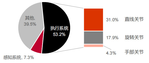 成本構成:以遠期20萬(wàn)單價(jià)測算,執行系統BOM占比G,約53.2%(其中直線(xiàn)、旋轉、手部分別