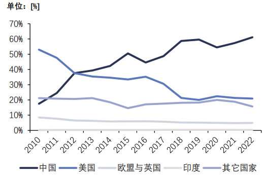 國家。排名D二的美國占比為20.9%,而