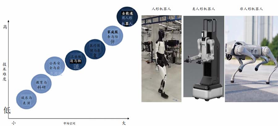 國內機器人大多瞄準三類(lèi)下游進(jìn)行布局,產(chǎn)品形態(tài)由非人形到類(lèi)人形逐步拓展至雙足人形。人形機器人可