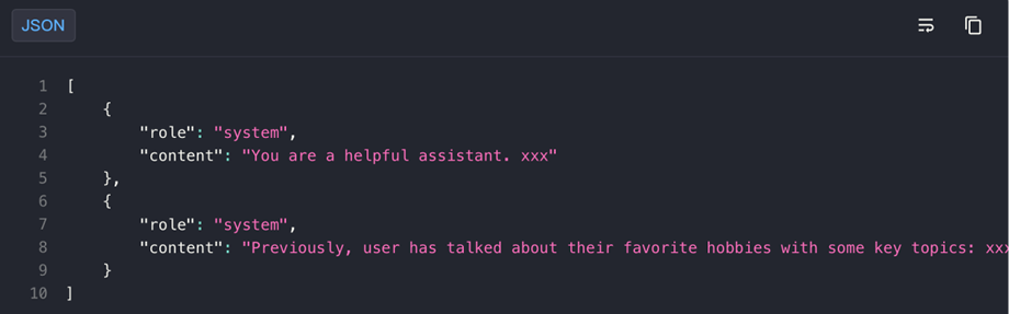 以下示例展示了通過(guò) system_messages 注入經(jīng)過(guò)總結的記憶內容: