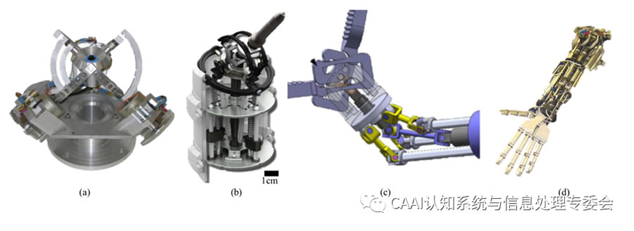 商業(yè)手腕和研究手腕之間也存在著(zhù)明顯的差異。市面上的手腕可以作為獨立的假肢,也可以作為工業(yè)和外科手臂的集成部分。商業(yè)假肢手腕往往是被動(dòng)裝置,具有離散的鎖定位置,可調摩擦離合器,或彈性關(guān)節,所有這些都有可能用于操縱。研究用的手腕應用廣泛,包括假肢、類(lèi)人機器人、太陽(yáng)能追蹤器和外科機器人。設計采用串行、并行和混合機制。正如預期的那樣,研究裝置包含了更多種耦合方案和驅動(dòng)技術(shù)。