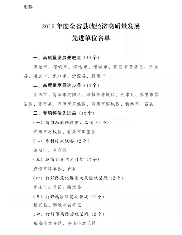 為表彰先進(jìn),進(jìn)一步激發(fā)縣域經(jīng)濟發(fā)展活力,增強縣域經(jīng)濟發(fā)展動(dòng)力,經(jīng)研究決定,對2019年度10個(gè)“G質(zhì)量發(fā)展先進(jìn)縣”、10個(gè)“G質(zhì)量發(fā)展進(jìn)步縣”及12個(gè)“專(zhuān)項評價(jià)先進(jìn)縣”進(jìn)行通報表彰。