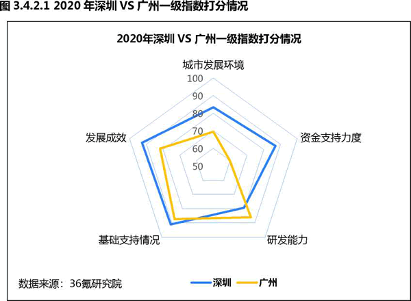 深圳人工智能發(fā)展總指數得分為86.52分,廣州得分77.74分,分別占據全 國人工智能發(fā)展城市第三位和第六位。雖然深圳有深圳大學(xué)、南方科技大學(xué)等G校 資源,但廣州整體研發(fā)能力更勝一籌,杰出人才總量、論文產(chǎn)出數量均相對L先。 雖然廣州研發(fā)能力較強,但整體實(shí)力上與深圳相比還存在一定差距,尤其是城市發(fā) 展環(huán)境、資金支持力度和發(fā)展成效上均不及深圳。