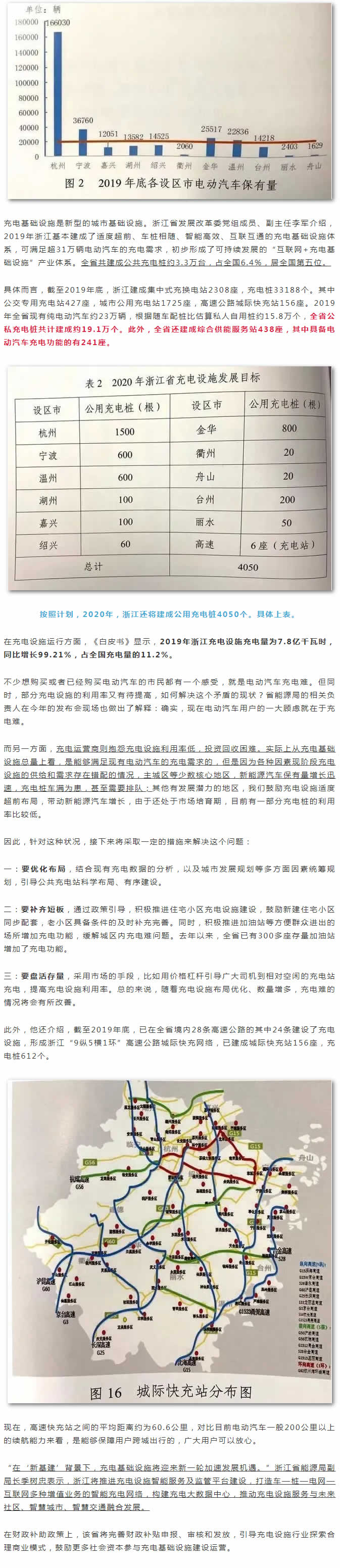 9月4日浙江省發(fā)展改革委、浙江省能源局,9月4日發(fā)布《2019年浙江省電動(dòng)汽車(chē)充電基礎設施發(fā)展白皮書(shū)》(下稱(chēng)《白皮書(shū)》)顯示,截至2019年底,浙江電動(dòng)汽車(chē)保有量超31萬(wàn)輛,約占全國10%,同比增長(cháng)68.75%,完成“十三五”規劃目標2的135.48%。