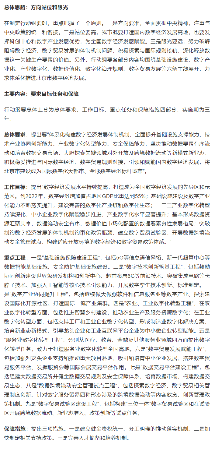 《北京市促進(jìn)數字經(jīng)濟創(chuàng )新發(fā)展行動(dòng)綱要(2020-2022年)》(以下簡(jiǎn)稱(chēng)《剛要》),經(jīng)北京市人民政府同意,相關(guān)部門(mén)于9月7日召開(kāi)了新聞發(fā)布會(huì )正式予以發(fā)布。
