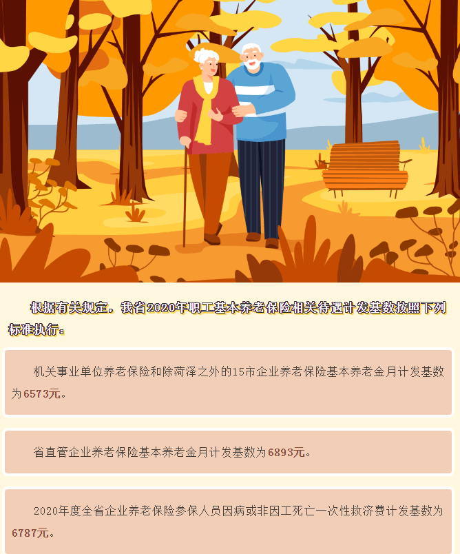 機關(guān)事業(yè)單位養老保險和除菏澤之外的15市企業(yè)養老保險基本養老金月計發(fā)基數為6573元。