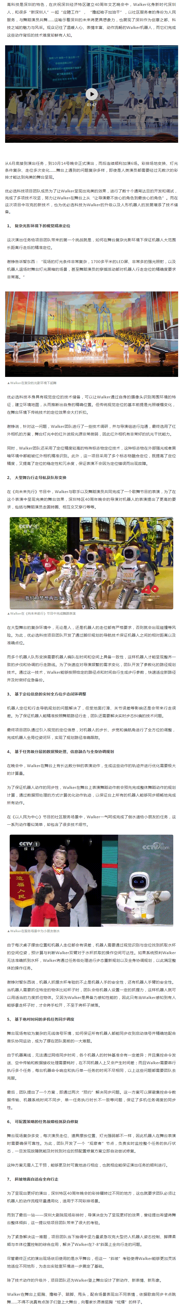 近日,“逐夢(mèng)·先行——慶祝深圳經(jīng)濟特區建立40周年文藝晚會(huì )”(以下簡(jiǎn)稱(chēng)深圳特區40周年晚會(huì ))在深圳大劇院圓滿(mǎn)落下帷幕,在這場(chǎng)總時(shí)長(cháng)100分鐘的晚會(huì )中,除了展現深圳一路先行先試、開(kāi)拓前行的歷程外,還有誕生在新時(shí)代的“深圳人”Walker機器人的活力亮相。