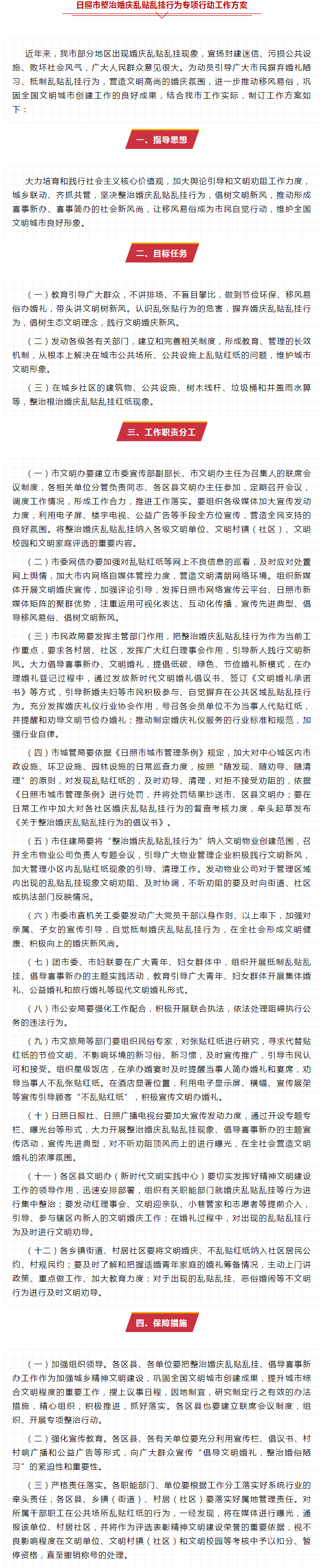 經(jīng)市文明委研究同意,現將《日照市整治婚慶亂貼亂掛行為專(zhuān)項行動(dòng)工作方案》印發(fā)給你們,請結合實(shí)際認真貫徹執行。
