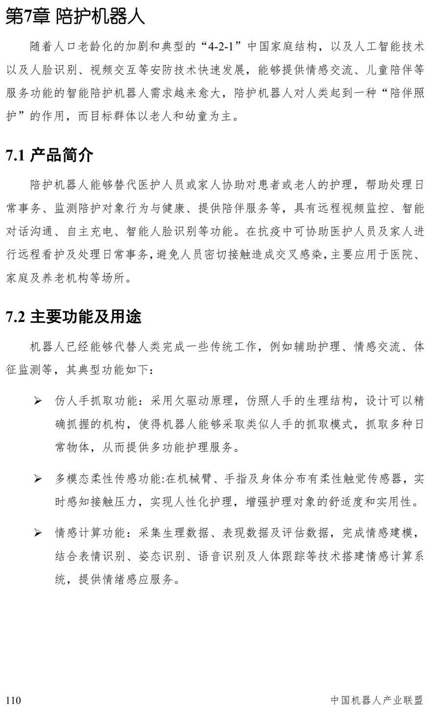 在傳感器、人工智能、大數據等技術(shù)快速發(fā)展下,陪護機器人將更加的智能化和人性化。如:融合物聯(lián)網(wǎng)、云計算等技術(shù),采用多機器人協(xié)作機制,打造智慧陪護模式,實(shí)現多功能協(xié)同的居住空間;通過(guò)多傳感器智能感知系統,結合語(yǔ)義理解、圖像自動(dòng)標題、深度行為樹(shù)分析模型等技術(shù),使機器人可根據用戶(hù)的表情和手勢指令提供相關(guān)服務(wù);能夠主動(dòng)識別并學(xué)習掌握陪護對象習慣、行為和個(gè)性, 體察人類(lèi)情感并建立用戶(hù)畫(huà)像,進(jìn)而提供針對性服務(wù);在分級診療制度下,充分利用互聯(lián)網(wǎng)優(yōu)勢,把陪護機器人與社區、養老院和醫院有機聯(lián)合在一起,順應醫養結合大趨勢,運用信息化技術(shù)實(shí)現“一對多”的新型陪護模式