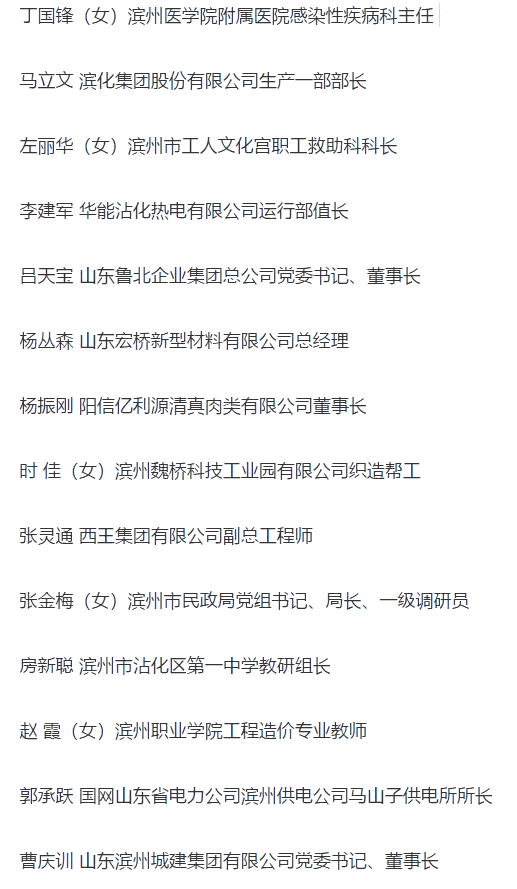 > 2021年濱州市五一勞動(dòng)獎?wù)芦@得者名單