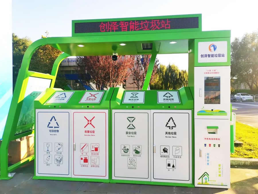 另一邊,我們的人工智能垃圾站也是十足的“吸睛”小能手,“小清小清,玻璃瓶是什么垃圾?”“玻璃瓶是可回收垃圾!比斯だ九溆姓Z(yǔ)音交互系統,不僅可以向“小清”詢(xún)問(wèn)垃圾應如何分類(lèi),還可以詢(xún)問(wèn)天氣狀況、附近景點(diǎn)等豐富的內容。垃圾站的D部,還配備了攝像頭和滅蚊燈,攝像頭可以方便工作人員實(shí)時(shí)監控垃圾投放情況,滅蚊燈則解決了垃圾站蚊蠅繁多的煩惱。目前,人工智能垃圾站已經(jīng)在北京、河北、山東、甘肅多個(gè)城市落地應用。