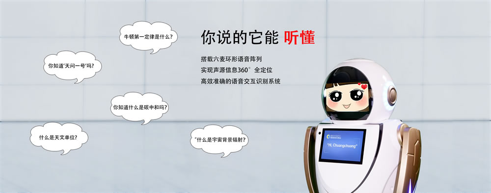 迎賓接待智能機器人具備語(yǔ)音識別功能,可回答用戶(hù)提出的眾多問(wèn)題,回答內容可以定制,機器人則用幽默的語(yǔ)言回答賓客提問(wèn)產(chǎn)生良好的互動(dòng)效果
