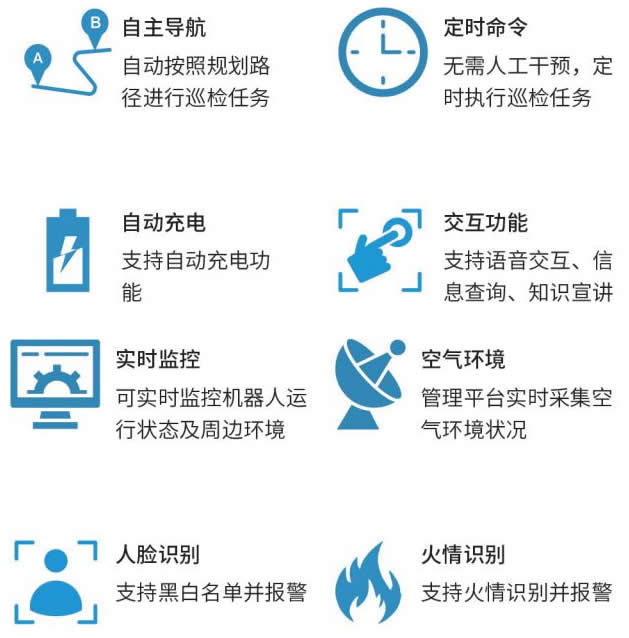 智能防爆機器人,它是一種綜合了自主導航、音視頻智能識別、危險預警、人員識別、人體跟隨等多種智能技術(shù)相融合的綜合性安防機器人,可以協(xié)助人們完成重要場(chǎng)所的監控巡邏保安工作,同時(shí)可結合固定監控和環(huán)境信息的收集分析,構成完整的安防監控系統,滿(mǎn)足數據中心、酒店、商場(chǎng)、辦公區域等室內場(chǎng)所的安全巡檢需求。