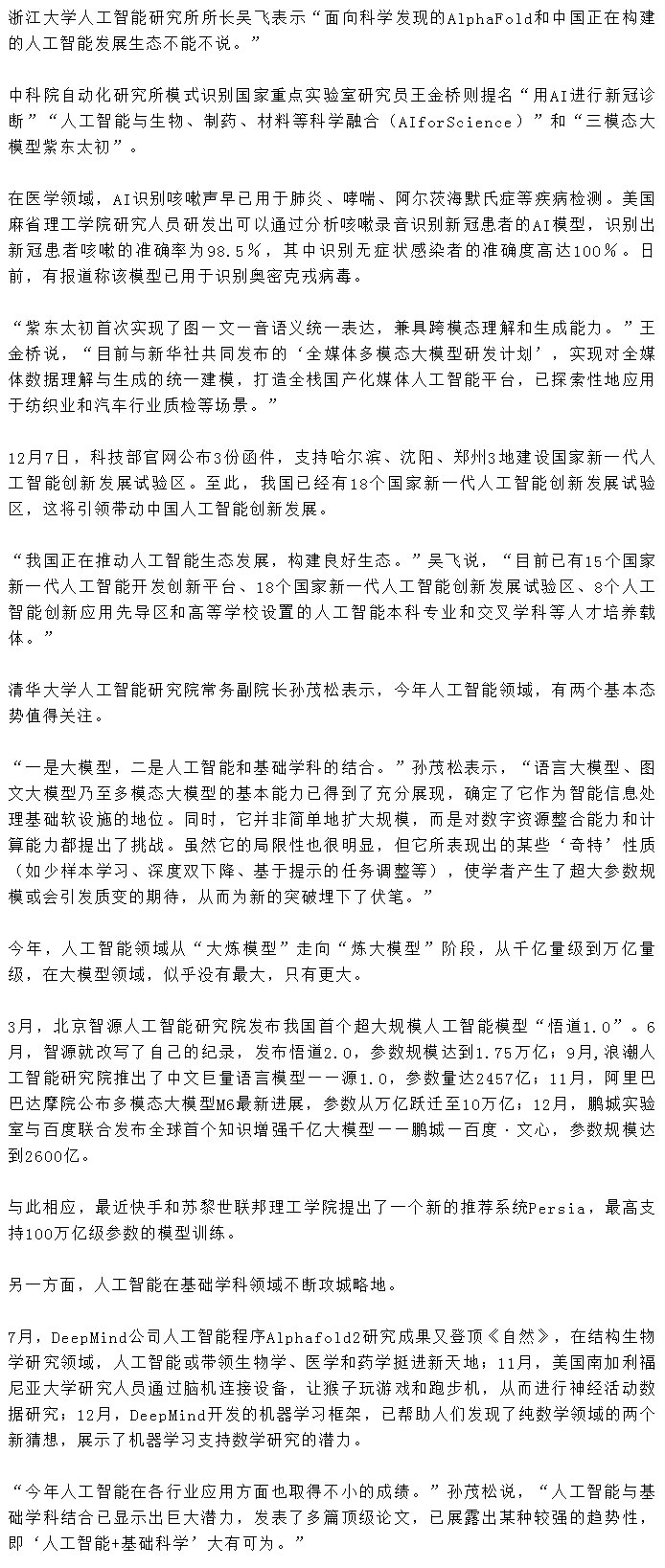 中科院自動(dòng)化研究所模式識別國家重點(diǎn)實(shí)驗室研究員王金橋則提名“用AI進(jìn)行新G診斷”“人工智能與生物、制藥、材料等科學(xué)融合(AIforScience)”和“三模態(tài)大模型紫東太初”。