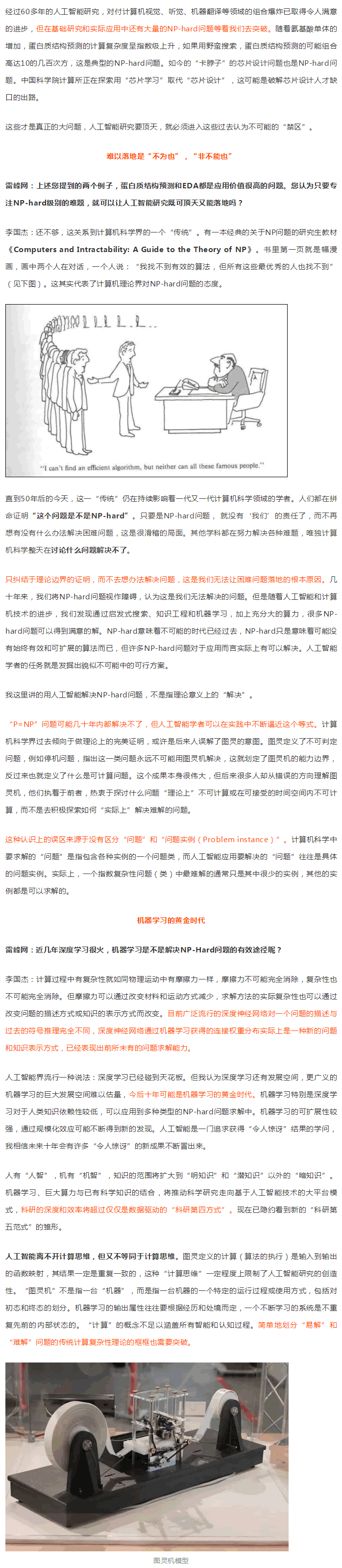 “像人”的人工智能是一個(gè)已經(jīng)被大家很重視的方向,但我認為人工智能的另一個(gè)發(fā)力點(diǎn)是「解決大問(wèn)題」。尤其是用機器學(xué)習的方法解決意義重大的科學(xué)難題,即在多項式時(shí)間內“有效解決”指數復雜性問(wèn)題。