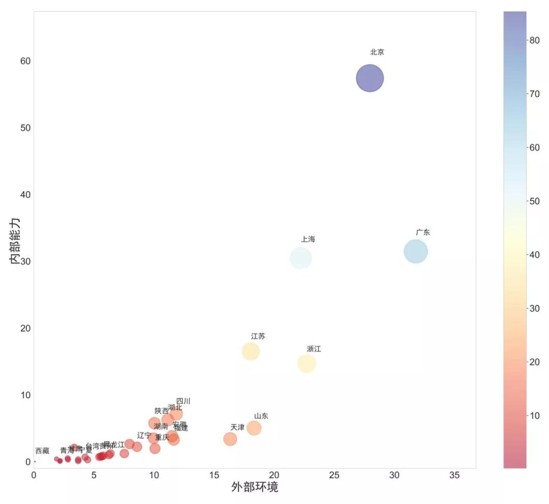 分省級維度,北京優(yōu)勢明顯;廣東、上海、浙江、江蘇緊隨其后;重慶等9省市蓄勢待發(fā)?傮w前三梯隊的14省市較之后省市有一定優(yōu)勢。