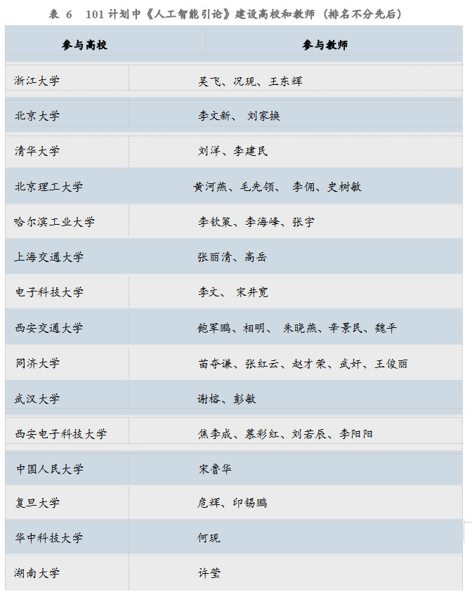 101 計劃啟動(dòng)以來(lái), 33 所計算機科學(xué)類(lèi)基礎學(xué)科拔尖學(xué)生培養基地建設G校 中 15 所G校的 40 位老師參與了《人工智能引論》 課程建設 (見(jiàn)表6) 。通過(guò)討 論, 參與建設教師認為人工智能具有多學(xué)科交叉綜合、 滲透力和支撐性強、G度 復雜等特點(diǎn), 呈現技術(shù)屬性和社會(huì )屬性G度融合特色。