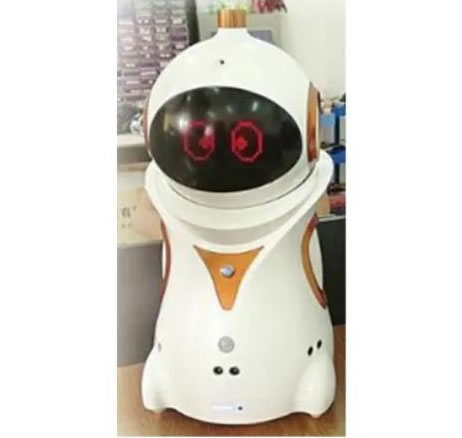 輪式移動(dòng)機器人,能自動(dòng)巡邏,發(fā)現異常主動(dòng)報警;可與人聊天,實(shí)現情感交互,能給監護人主動(dòng)發(fā)送實(shí)時(shí)視 頻和提醒信息。