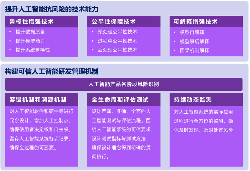 工智能仍是一項新技術(shù),回顧其發(fā)展歷程,真正大范圍地從實(shí)驗室走向產(chǎn)業(yè)實(shí)踐、 廣泛應用于我們的生產(chǎn)和生活之中,不過(guò)是十年的事情。持續探尋更健壯的技 術(shù)以及科學(xué)管控現有技術(shù)的"缺陷”,構建面向可持續發(fā)展的人工智能技術(shù)體系, 致力于推動(dòng)人工智能技術(shù)可用、可靠、可信,其內涵包括提升技術(shù)安全和構建技術(shù)管理機制兩個(gè)層面工作。