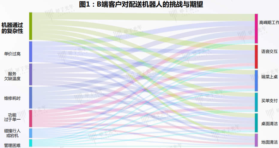服務(wù)行業(yè)B端用戶(hù)對配送機器人的期望較G,地面通過(guò)引起的復雜性難題凸顯。