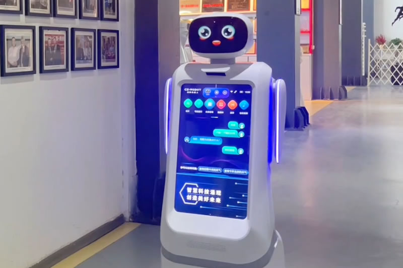 來(lái)到創(chuàng )澤公司前臺,一名機器人接待員便主動(dòng)迎上前來(lái),詢(xún)問(wèn)你的來(lái)訪(fǎng)目的,還可以為你做信息登記,前臺機器人可以變身前臺接待無(wú)接觸訪(fǎng)客邀約又具備變身行政助理的潛能
