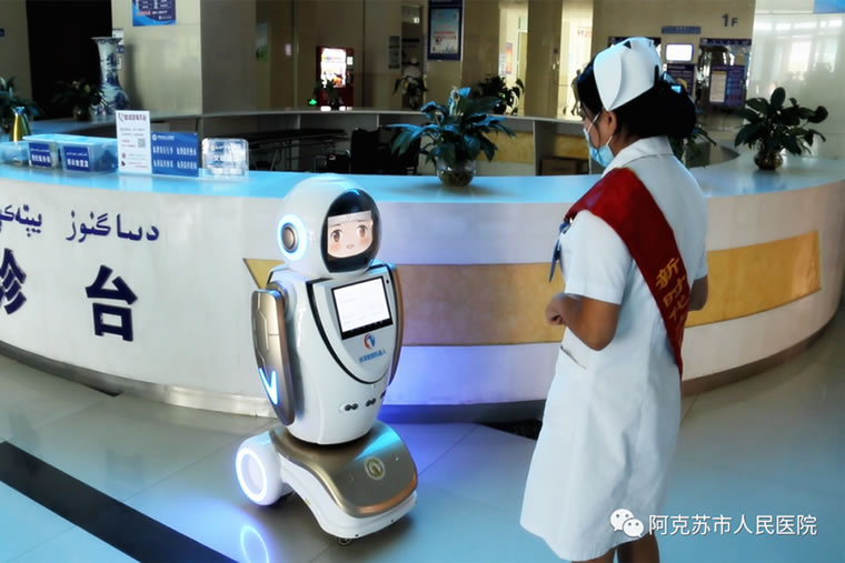 “您好!請問(wèn)有什么能夠幫助您的嗎?”近日,在阿克蘇市人民醫院門(mén)診綜合樓大廳內,一個(gè)長(cháng)相憨態(tài)可掬的智慧醫療機器人--“創(chuàng )創(chuàng )”,一經(jīng)出現,就瞬間吸引了前來(lái)我院就醫患者的眼球?汕f(wàn)別小看這個(gè)萌萌噠的小家伙,它的作用可大著(zhù)呢!
