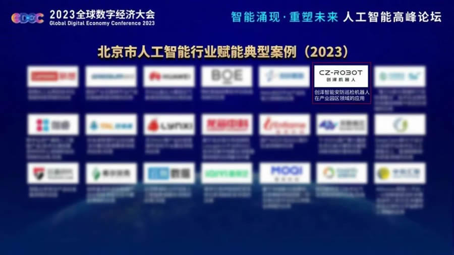 由2023數字經(jīng)濟大會(huì )組委會(huì )主辦的人工智能G峰論壇在京舉辦。在此次G峰論壇上,創(chuàng )澤智能機器人集團股份有限公司(以下簡(jiǎn)稱(chēng)“創(chuàng )澤集團”)憑借自主研發(fā)的智能安防巡檢機器人榮獲“北京市人工智能行業(yè)賦能典型案例(2023)”獎項。