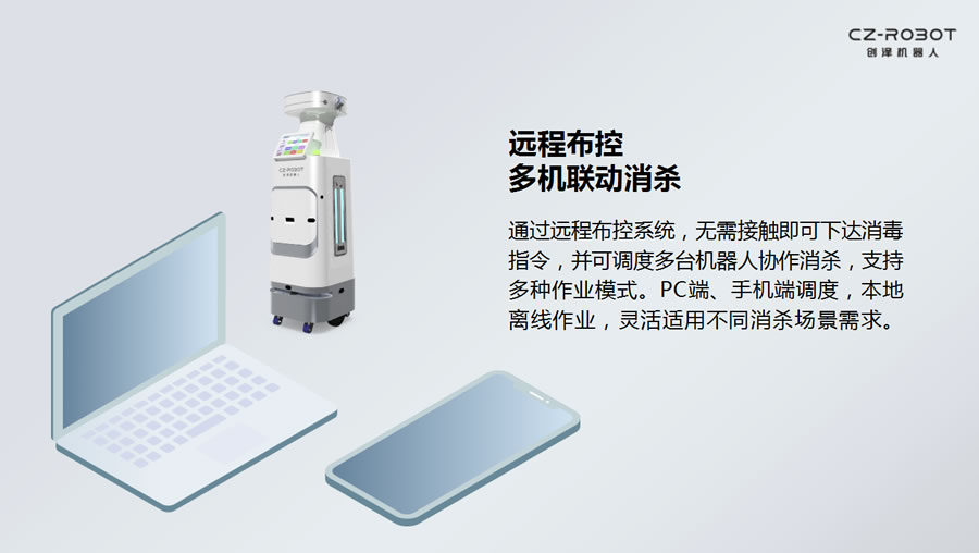 消毒機器人編號:CZ-RobotDf-DZ,可實(shí)現等離子消毒、紫外線(xiàn)消毒、地面消毒等多模式智能消毒,通過(guò)智能軟件管理。實(shí)現智能化消毒